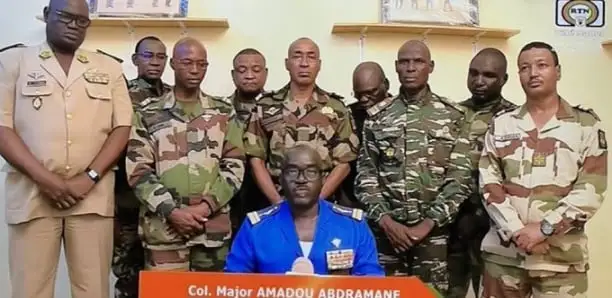 Dans une déclaration lue à la télévision nationale, le colonel-major Amadou Abdramane, entouré de neuf autres militaires en tenue, a annoncé la prise de pouvoir par le Conseil national pour la sauvegarde de la patrie (CNSP) au Niger. Le régime du président Mohamed Bazoum a été renversé par les forces de défense et de sécurité.